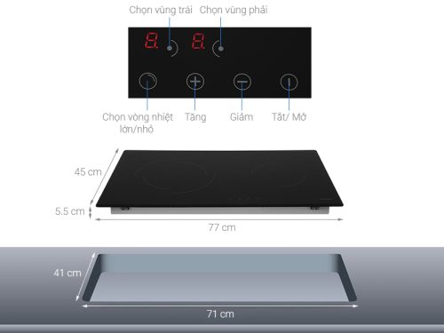 Nhiều tính năng an toàn: khóa bảng điều khiển, tự nhận diện vùng nấu, cảnh báo mặt bếp nóng,…