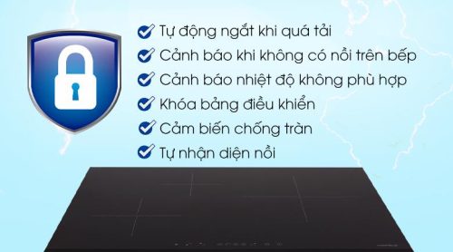 Tính năng an toàn:Tự tắt bếp khi nước tràn đến bảng điều khiển; Tự ngắt khi bếp nóng quá tả; iTính năng dừng bếp tạm thời; Cảnh báo mặt bếp nóng; Tự ngắt khi không có nồi; Cảnh báo khi không có nồi; Khóa bảng điều khiển; Cảnh báo nồi chảo không phù hợp