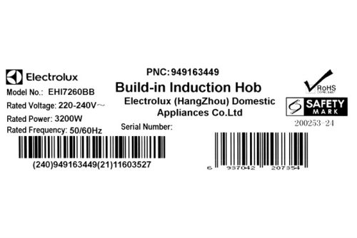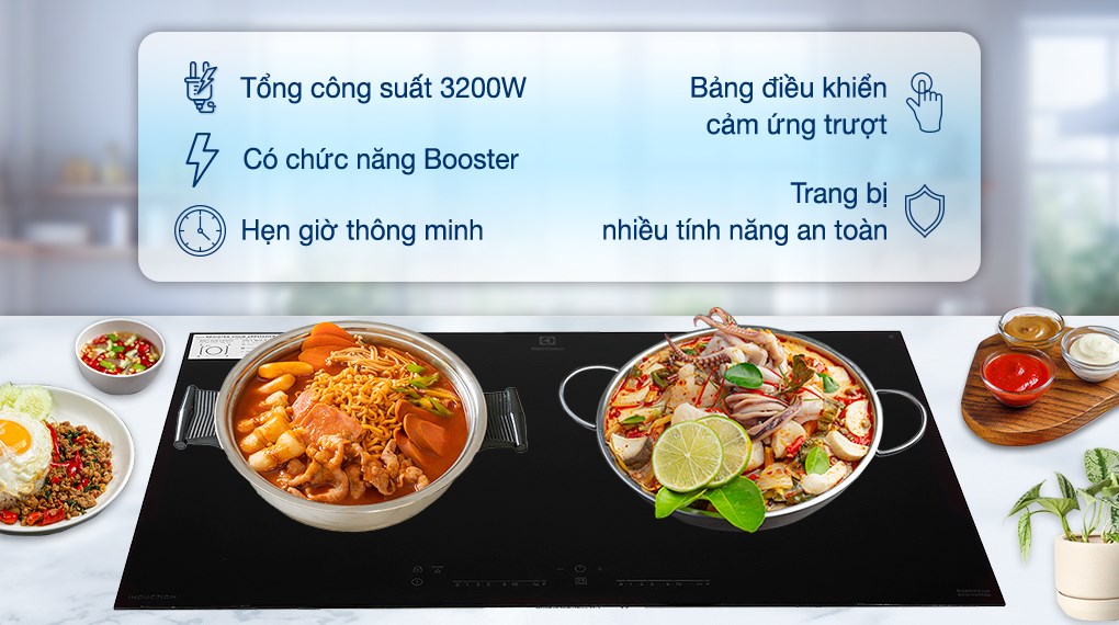Công suất vùng nấu:Trái: 2000/2400W – Phải: 1200/1500W