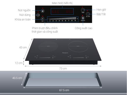 Loại bếp:Bếp từ đôi, Bếp âm cần lắp CB