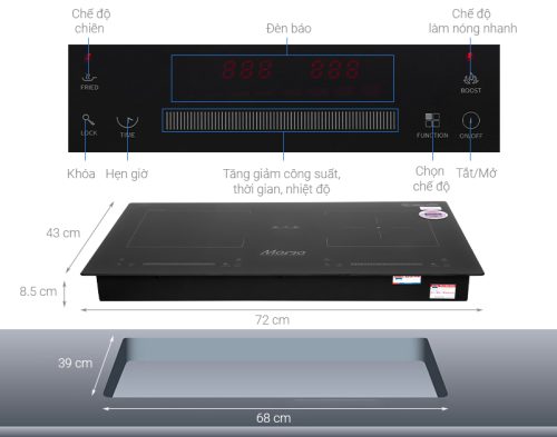 Có 2 vùng nấu thuận tiện với nhiều loại nồi, chảo có đế nhiễm từ.