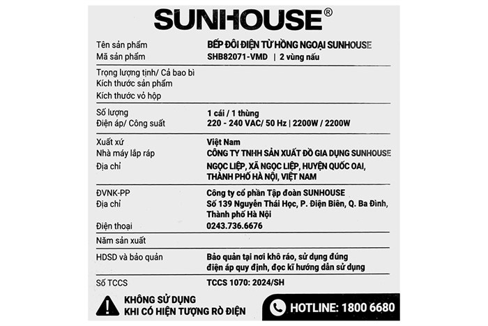 Trái (Hồng ngoại): 1100/2200W – Phải (Từ): 2000/2200W