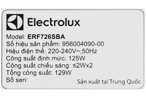 Thương hiệu Thụy Điển – Electrolux, sản xuất tại Trung Quốc.
