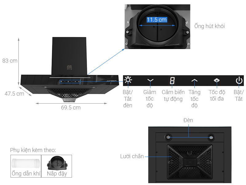 Ngang 69.5 cm – Cao 83 cm – Sâu 47.5 cm – Nặng 16 kg