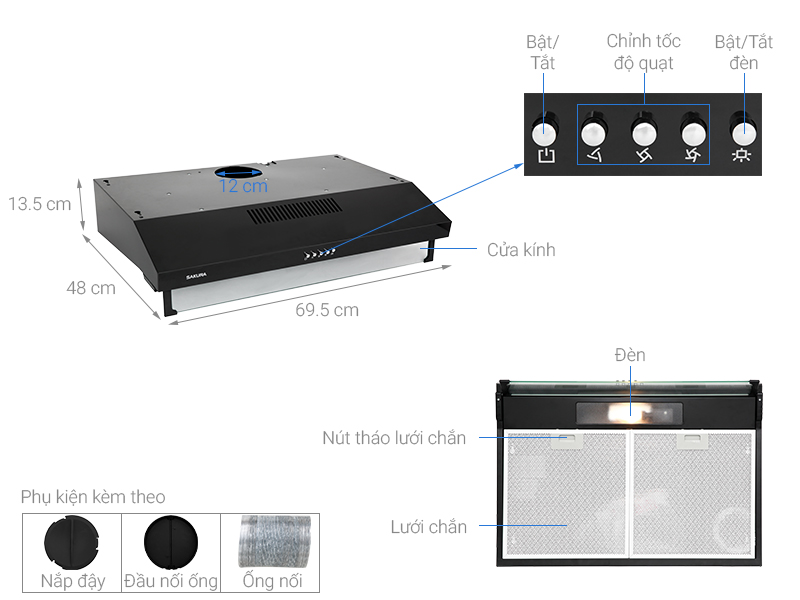Máy hút mùi áp tường Sakura SCR-2881B (xả kho giá rẻ, bảo hành chính hãng)