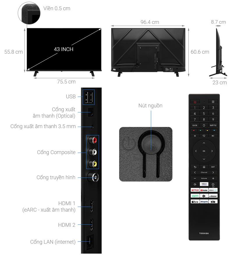 2 cổng HDMI có 1 cổng HDMI eARC (ARC), 1 cổng Composite
